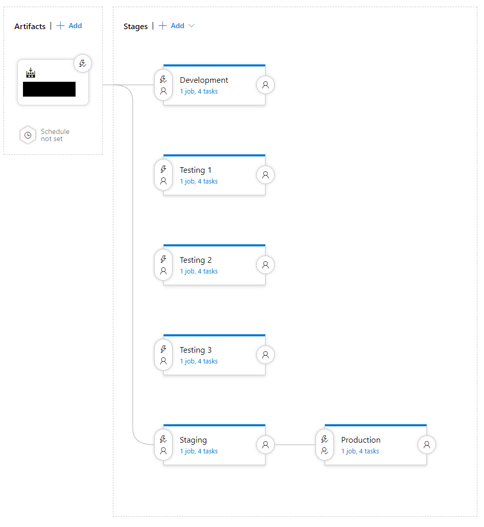 Each of the stages below, just like the previous release pipeline, is analogous to a given environment for the application.